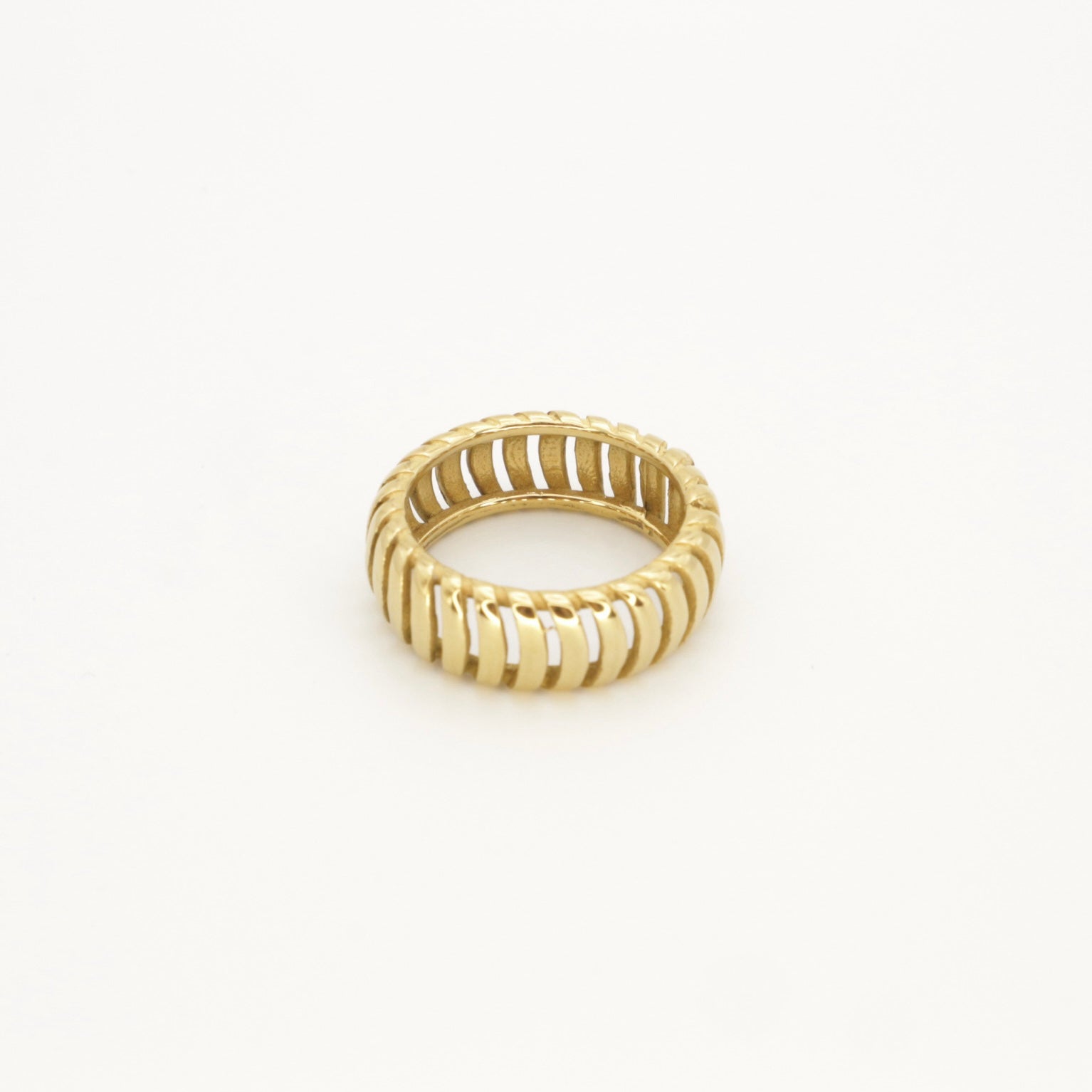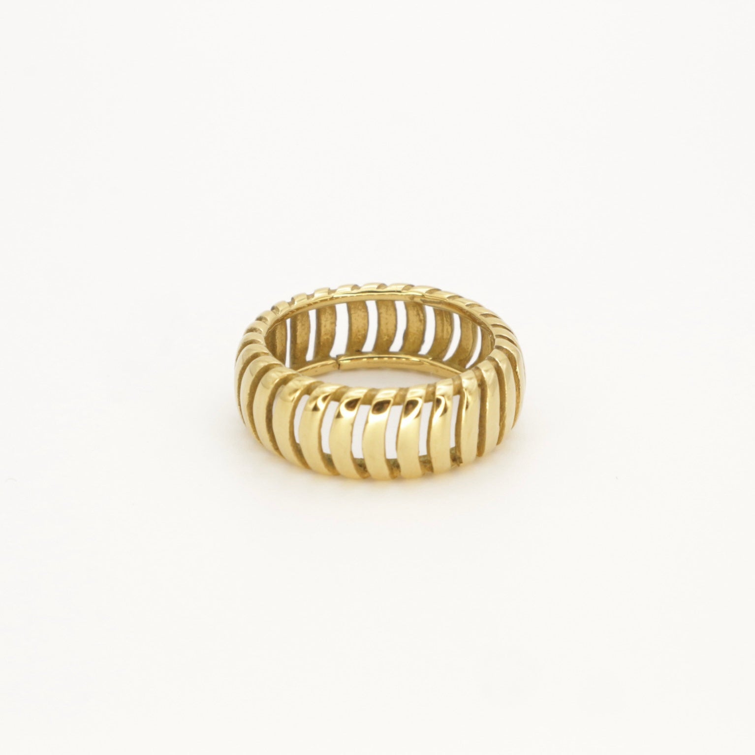 Description: This cutout crescent ring is made from Stainless Steel with 18k gold PVD coating. This understated yet striking piece is the ideal complement to your stackable ring collection. From the school run to lunch dates and nights out, it's your stylish, everyday choice!