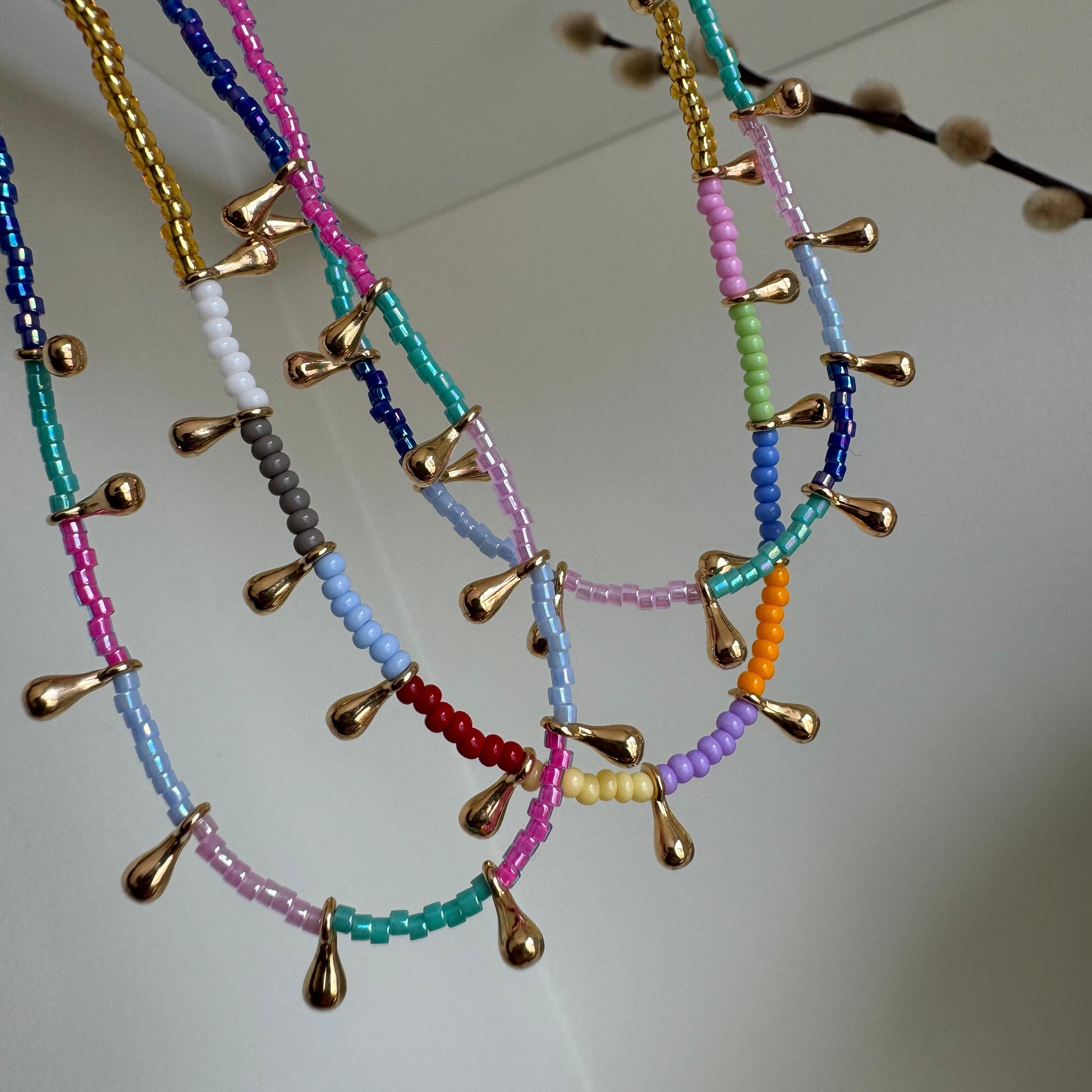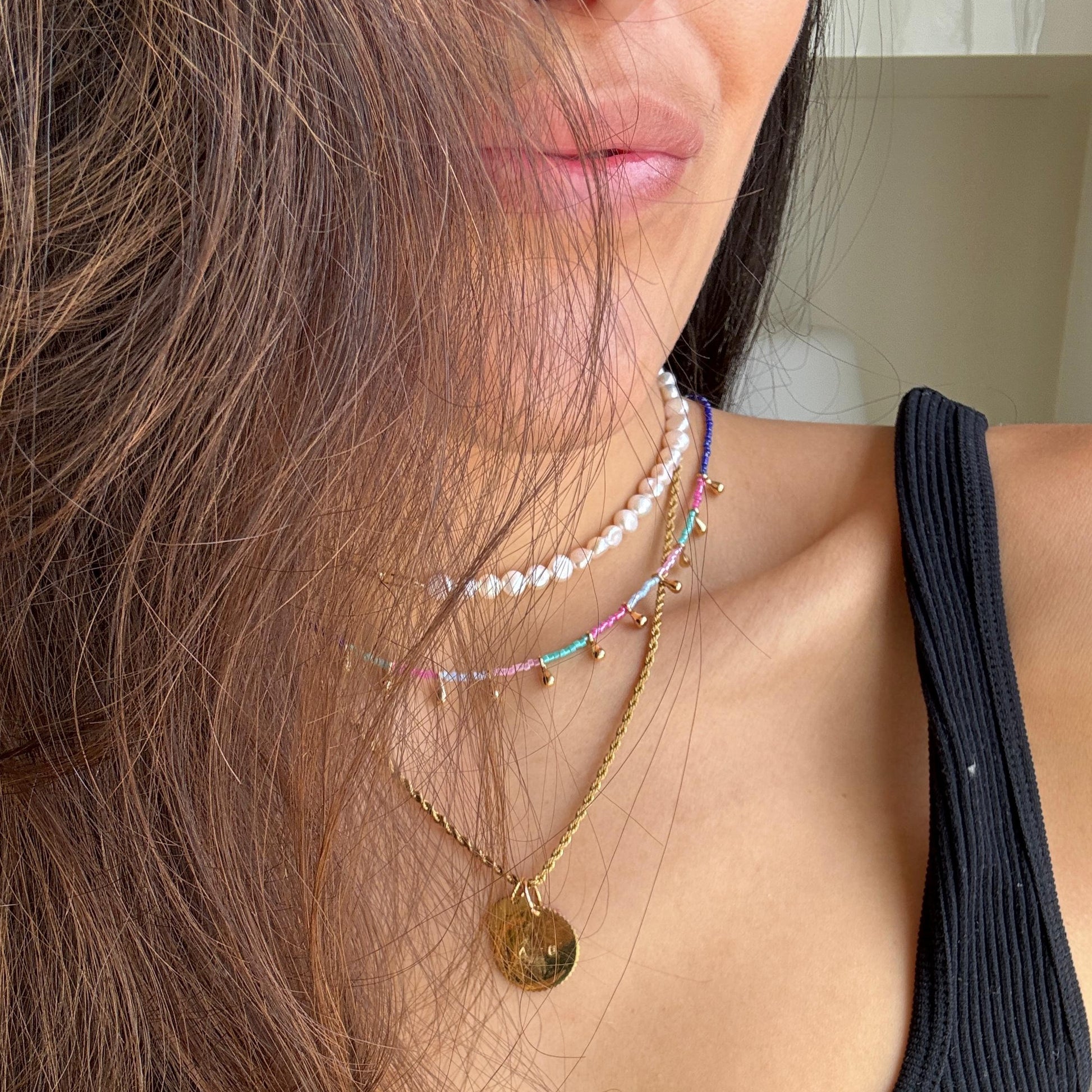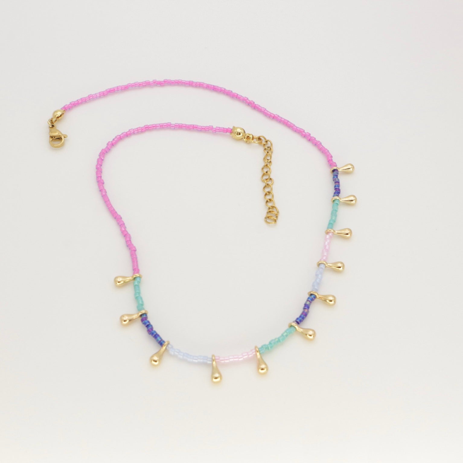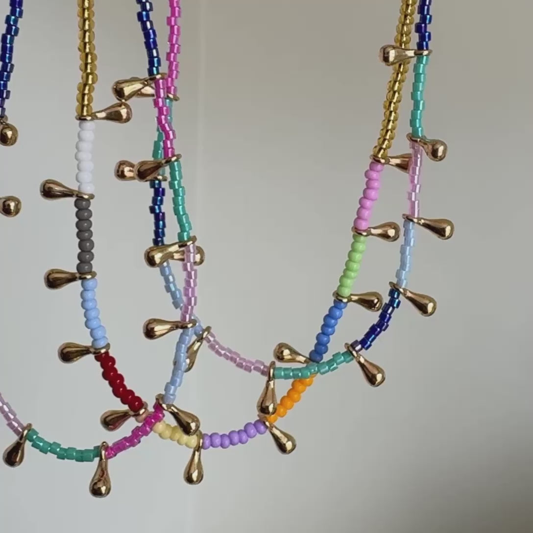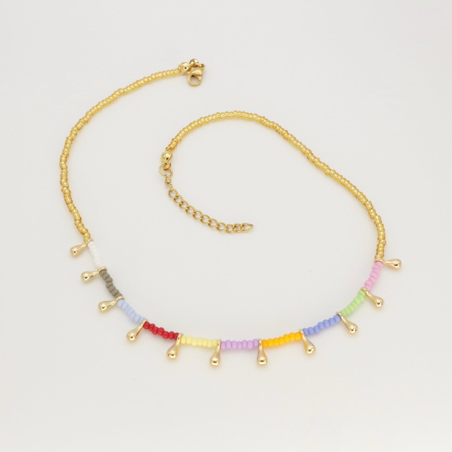 Description: These beautiful handmade chokers will upgrade your layers instantly this summer! These bold and colourful pieces are all handmade by our Colombian artisans from the finest Meyuki beads, using enamel or 18k gold plated stainless steel charms. Hypoallergenic, Nickel-free & Lead-free.