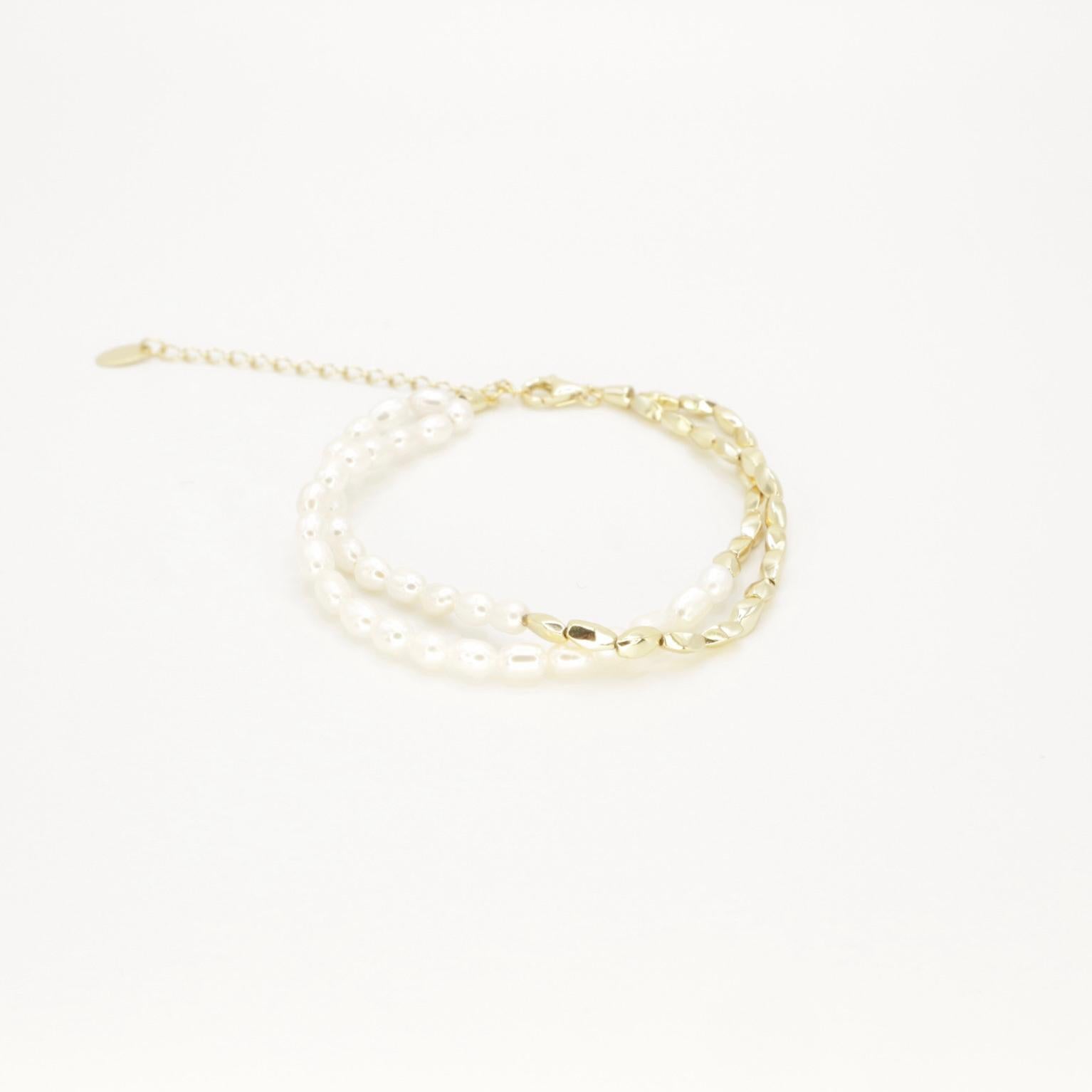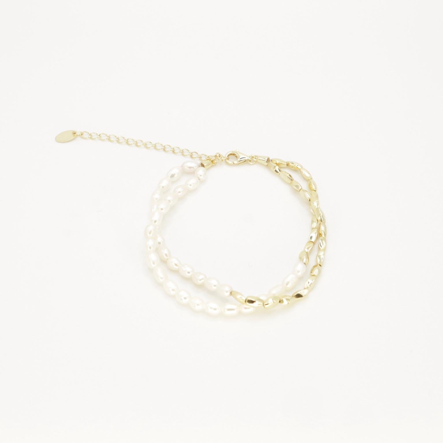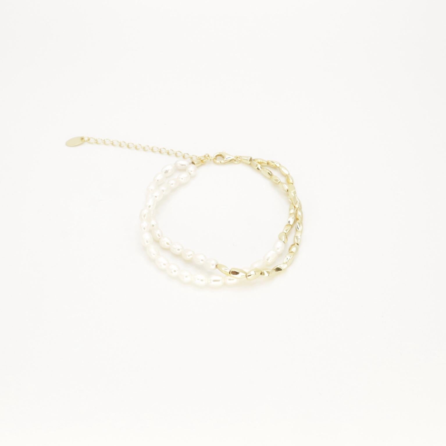 Description: Double layered dainty chain bracelet - 925 sterling silver, 14k gold plated, baroque freshwater pearls