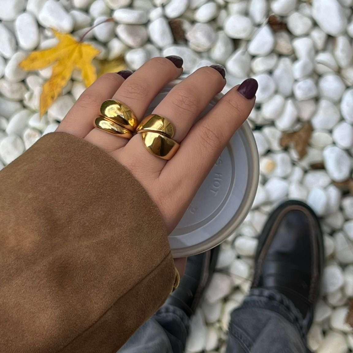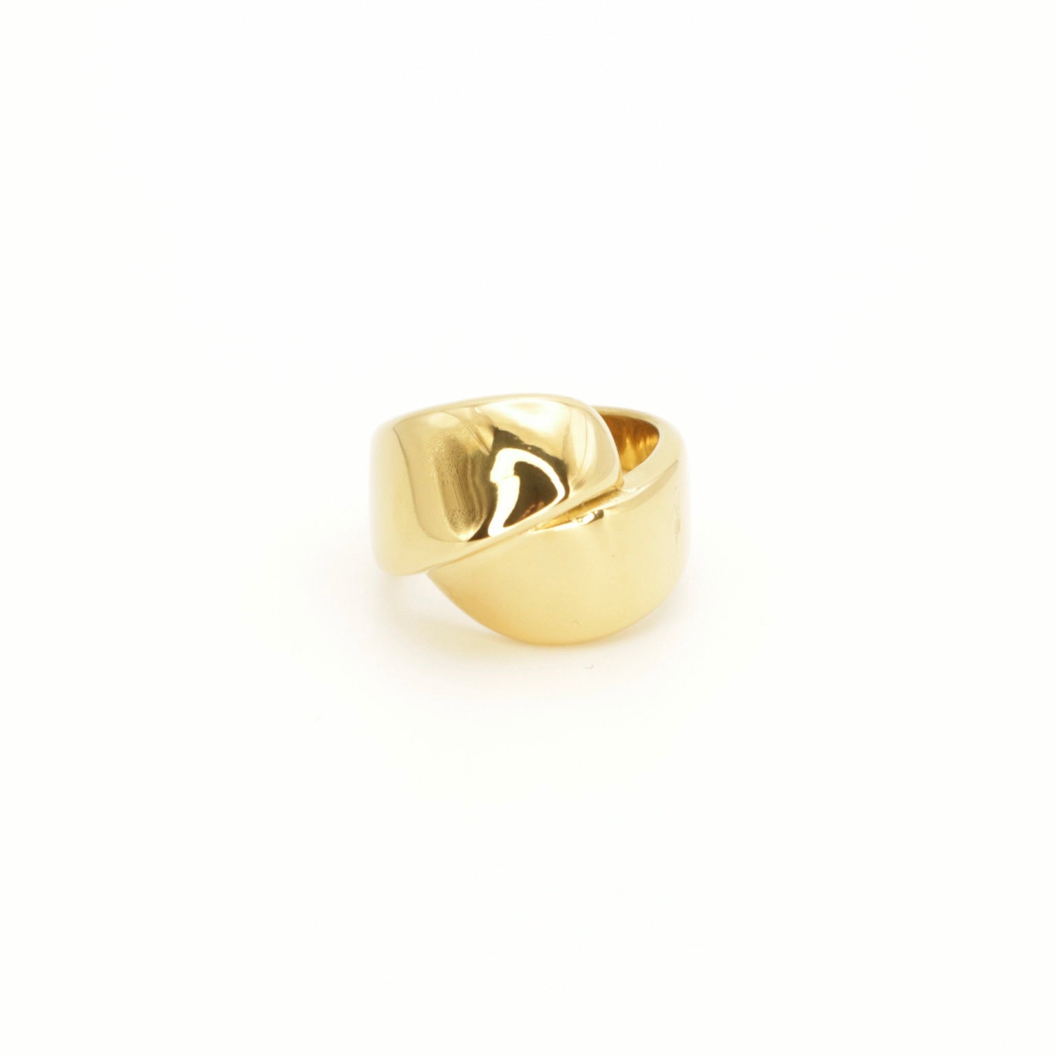 Description: Make a statement with our bold gold-plated stainless steel ring. Designed with a unique wrap-around style, the two ends meet elegantly at the front, symbolizing strength and connection. A timeless piece for any occasion.