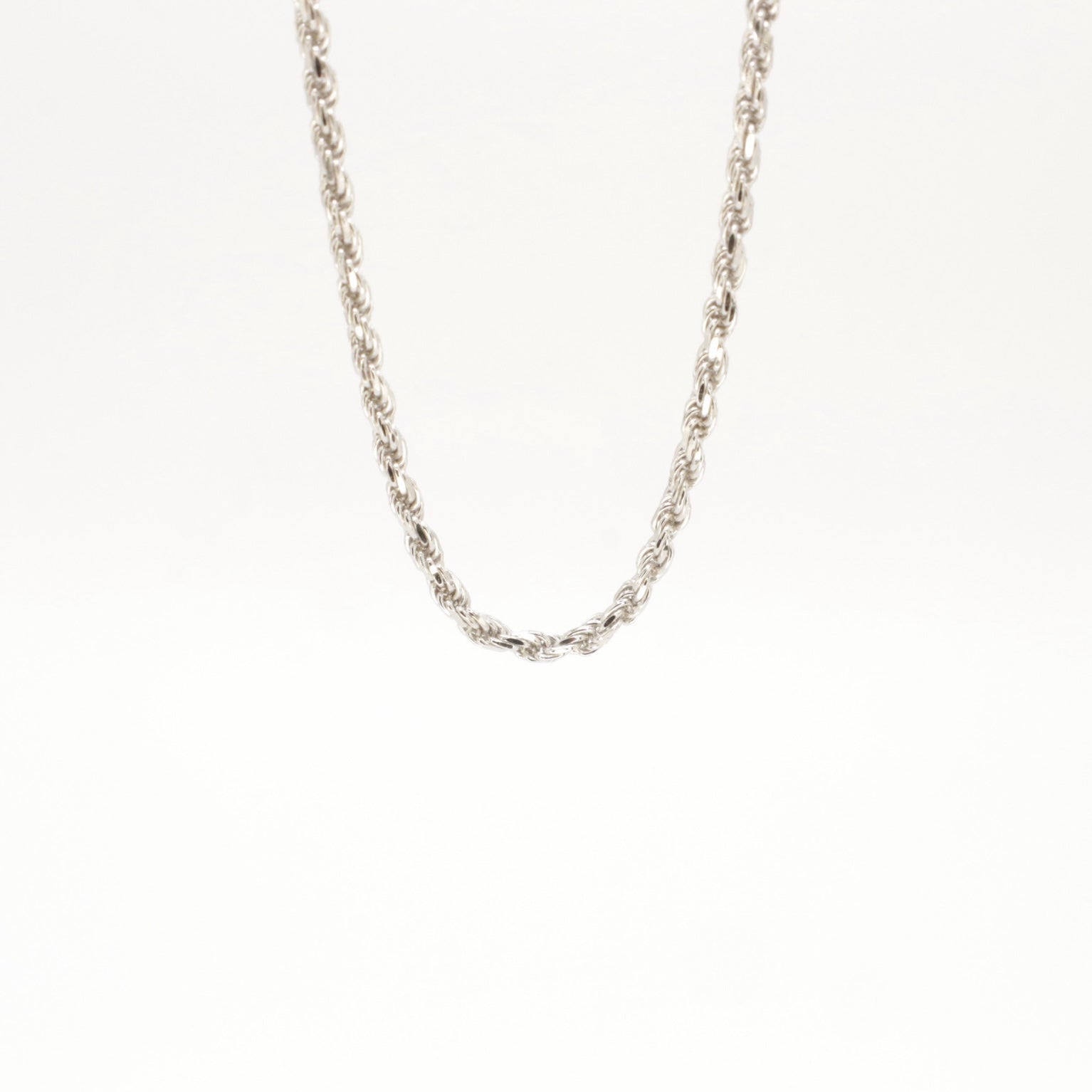 Description: This beautiful unisex slim rope chain is made from Sterling Silver with Rhodium PVD plating. Wear it alone as an everyday chain, or as part of a mixed metal stack for added flair.