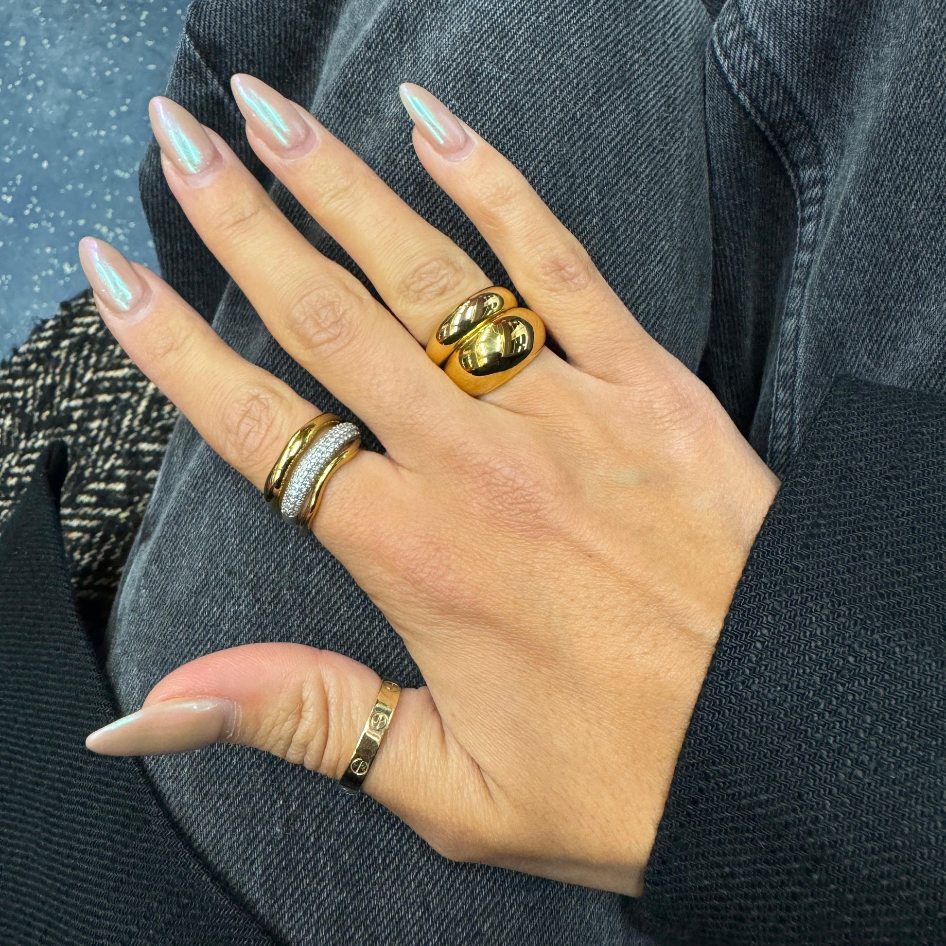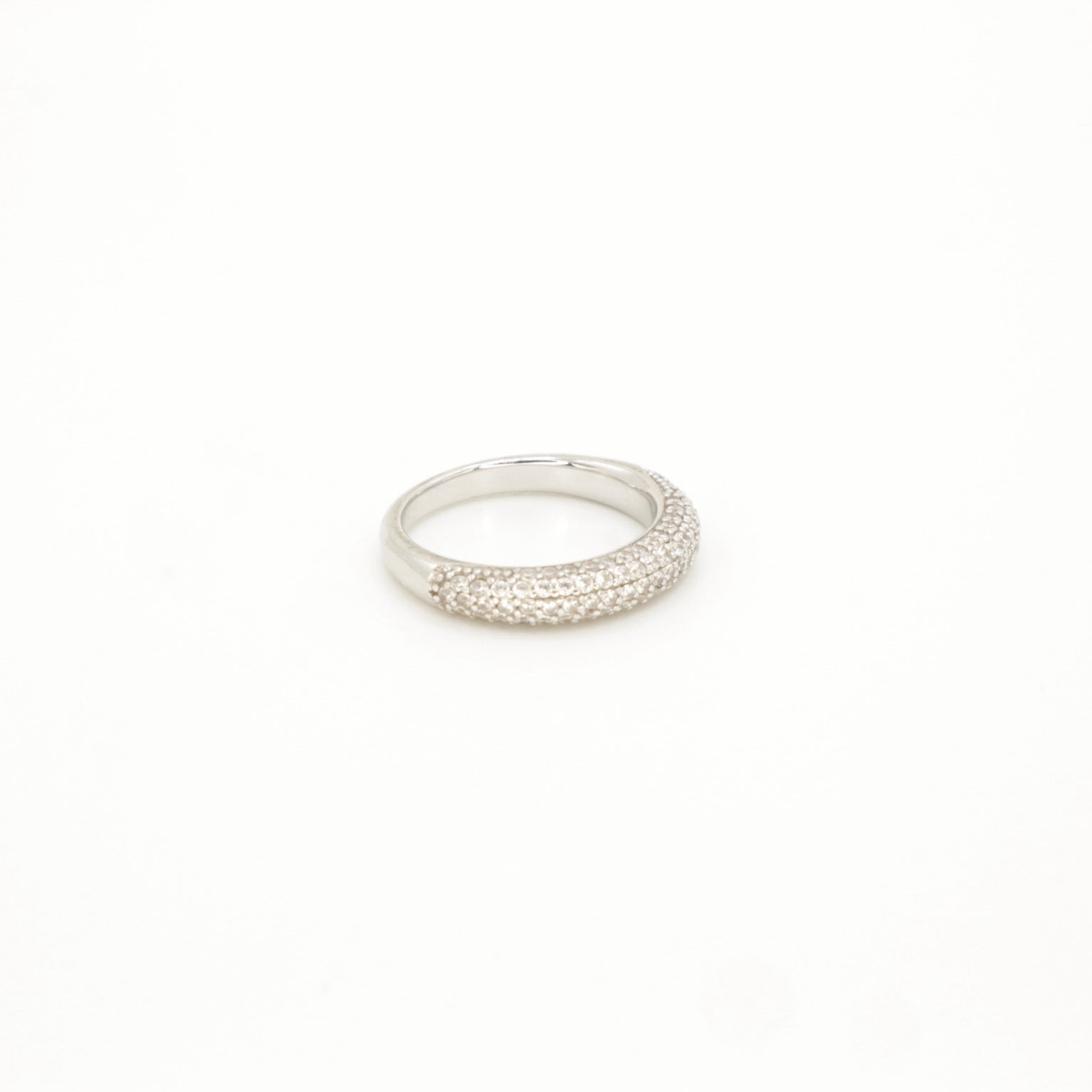 Description: Make a statement with our chunky slimline dome pavé ring, designed to add serious sparkle to your ring stacks. Crafted from rhodium-plated sterling silver, it's the perfect blend of style and sophistication and a MUST have for your mixed metal collection.
