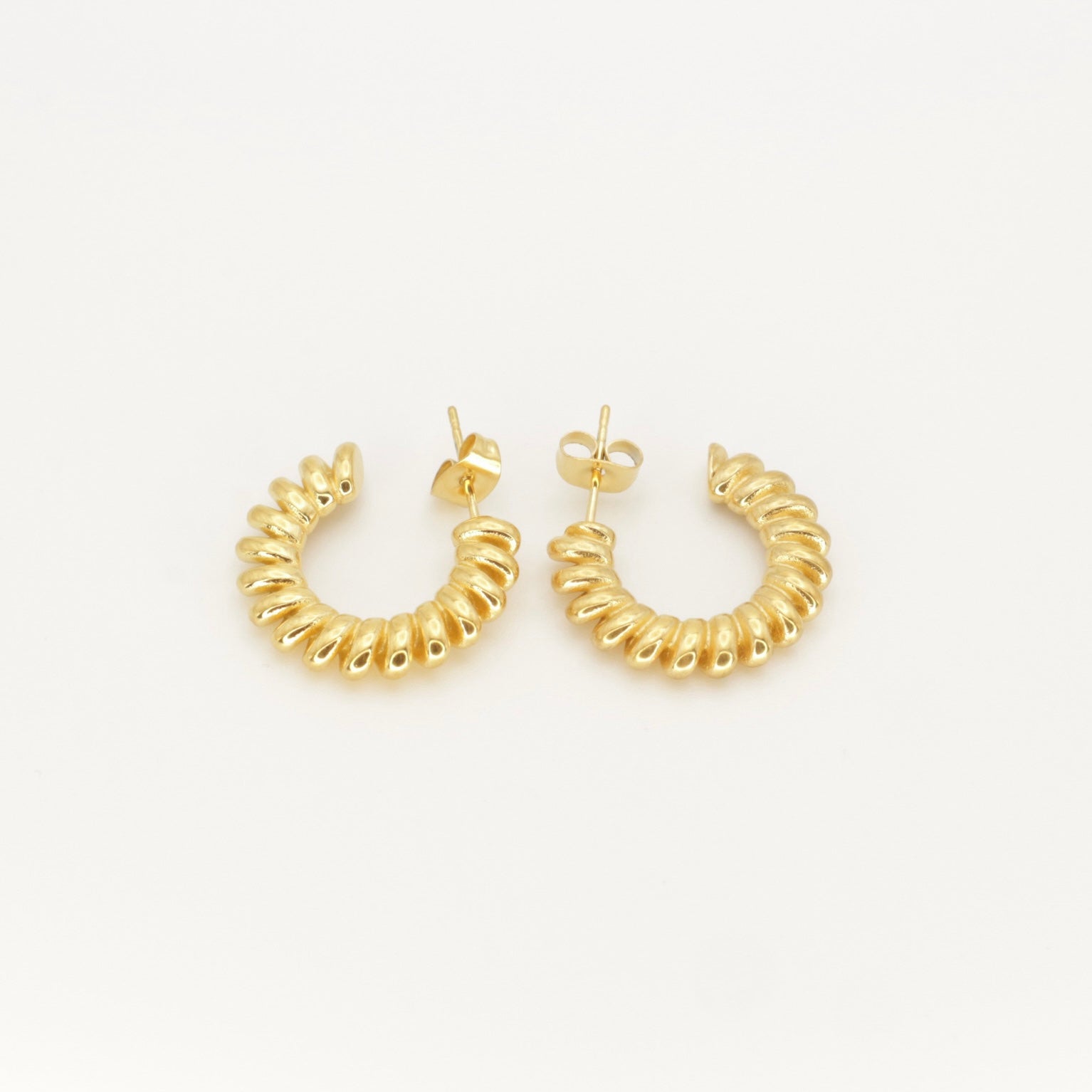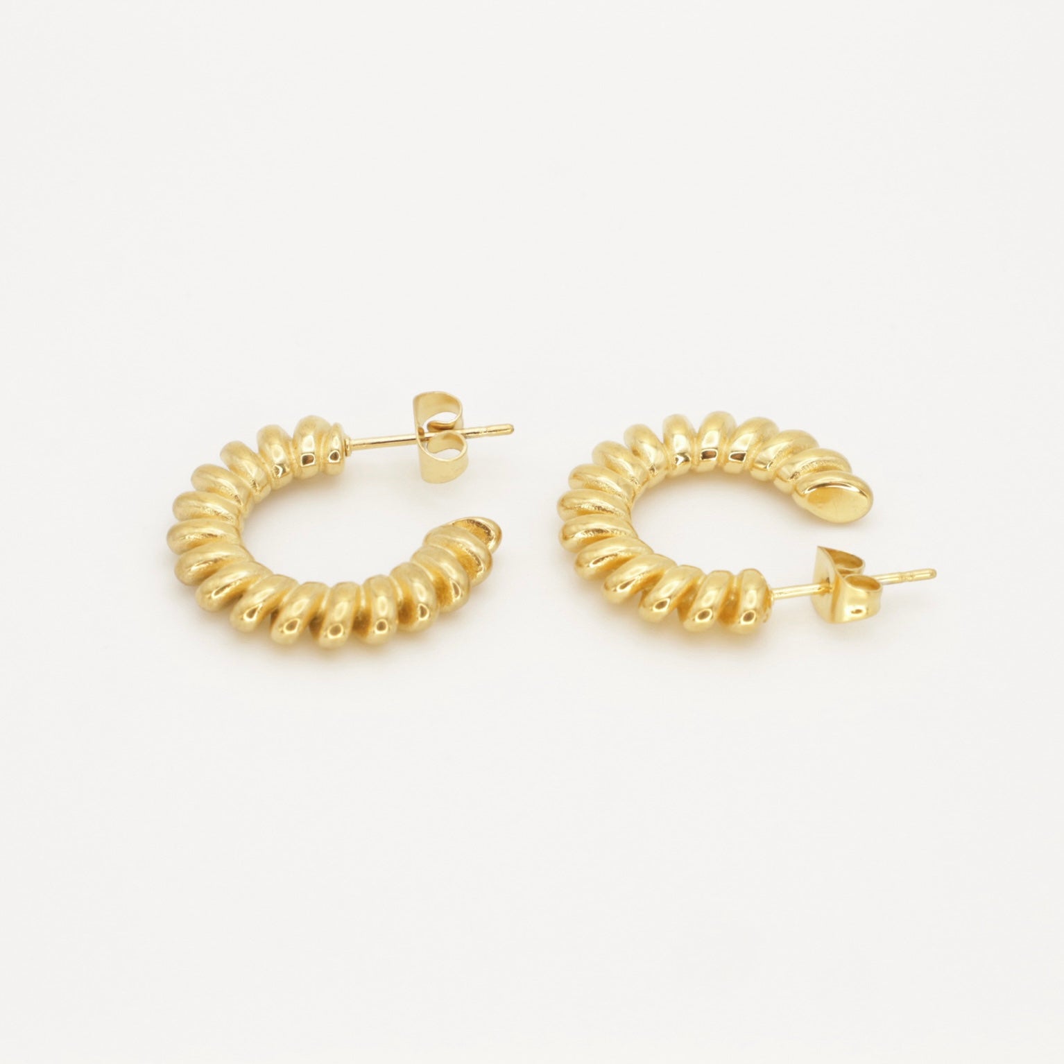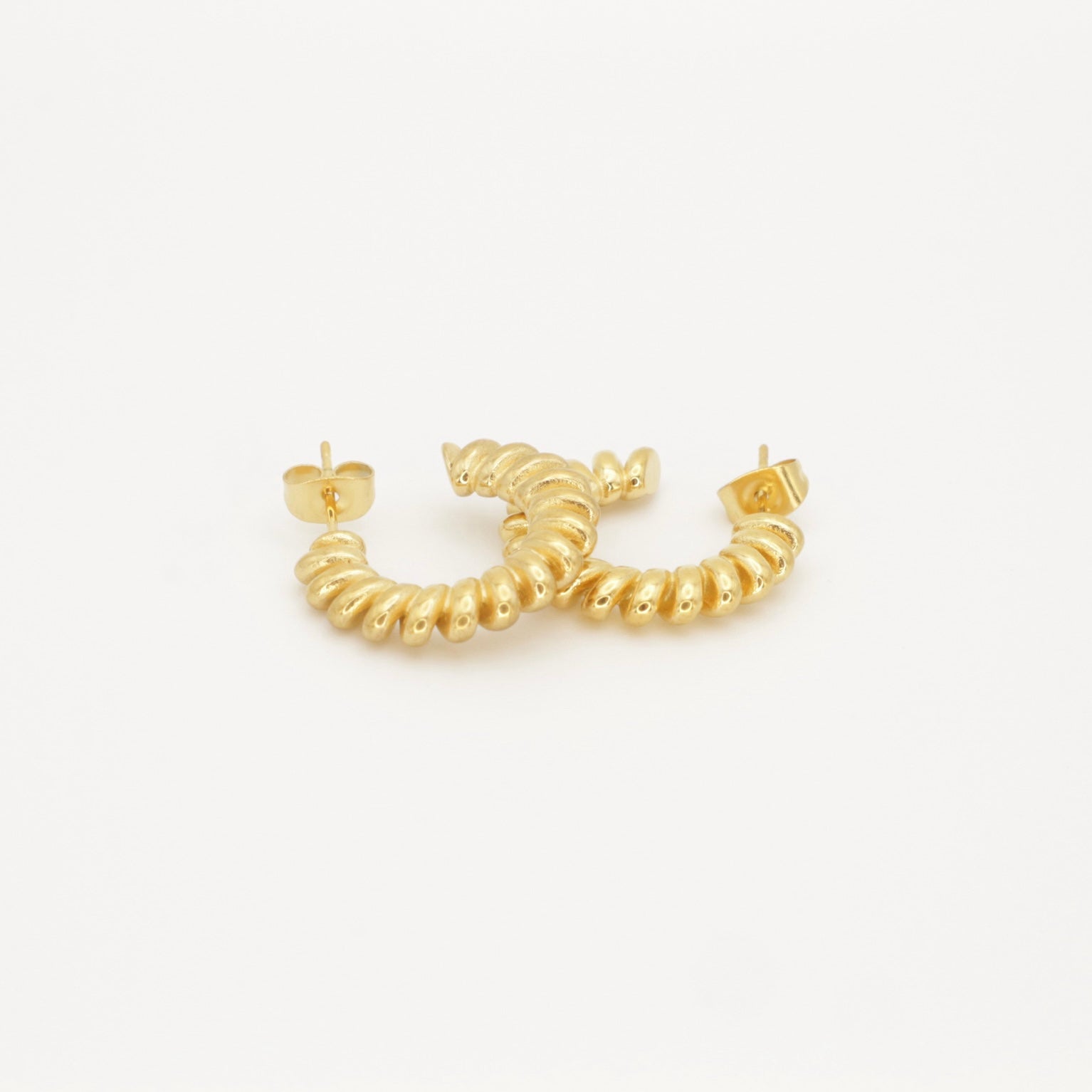 Description: Add a delicious twist to your style with croissant-inspired earrings in durable Stainless Steel with an elegant 18k gold PVD coating. Ideal for school runs, lunch dates, and girls' nights, they're your everyday companions. Designed to last, they're perfect for every moment, rain or shine. Grab yours now!