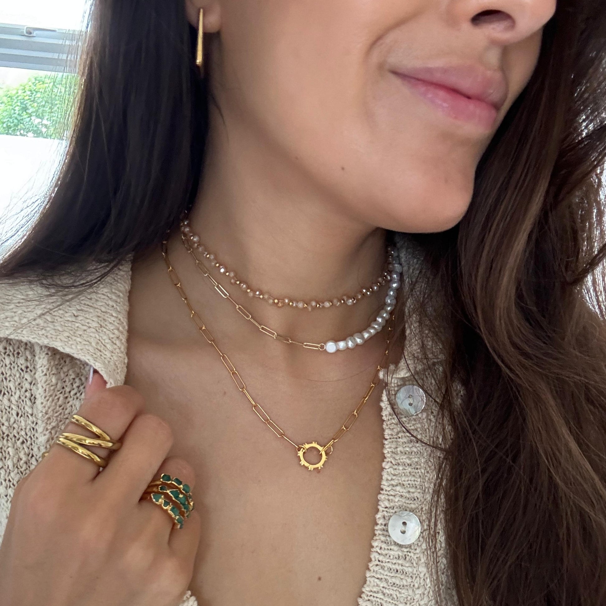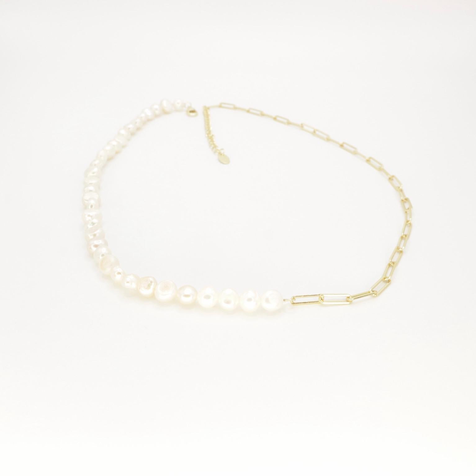 Description:this choker is made from 18k gold plating on sterling silver, with natural baroque pearls!