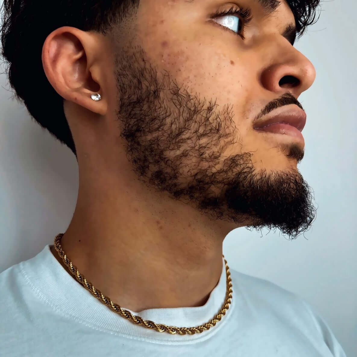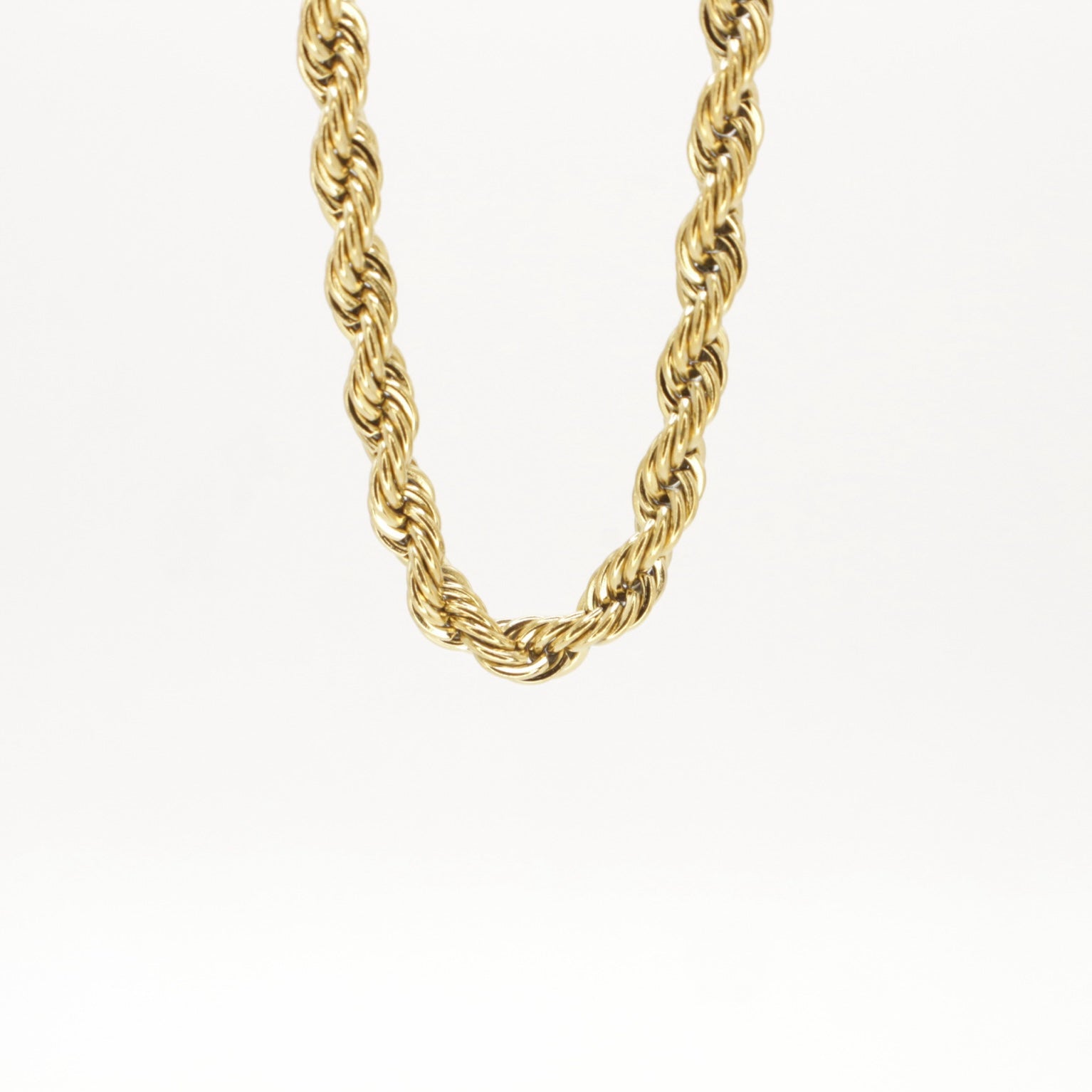 Description: This twisted rope stacking chain is made with 18k gold PVD plating. This chain is the perfect addition to your wardrobe and stacking collection. Wear it on it's own or with a pendant for an extra touch. The 3mm chain can be worn alone for a statement feel, or paired with our 2 and 5mm for a gorgeous stacking combo!